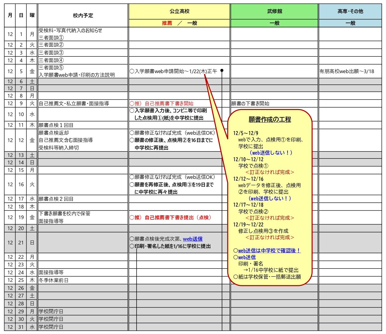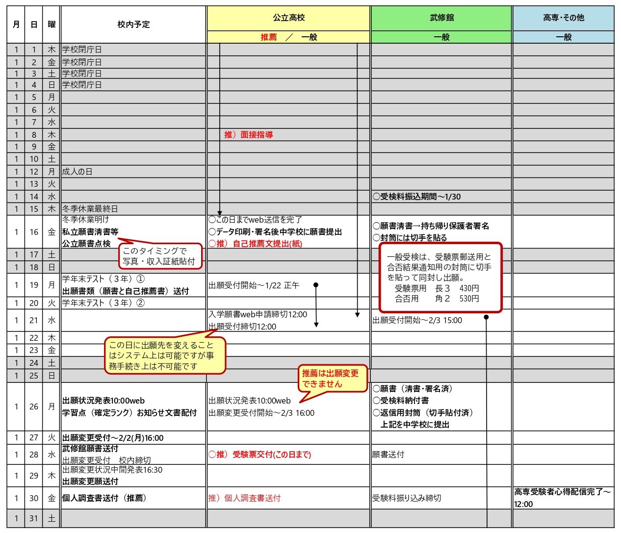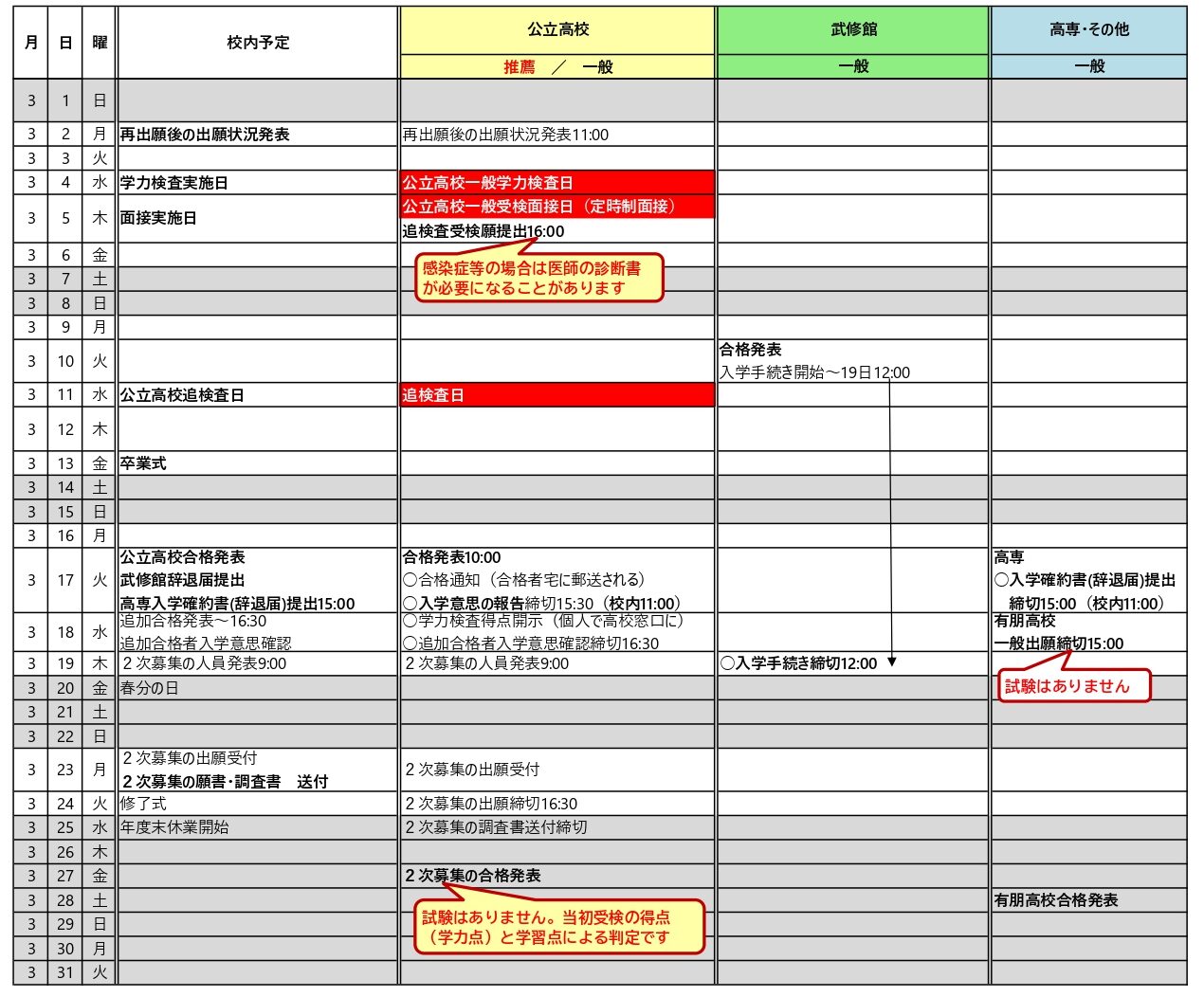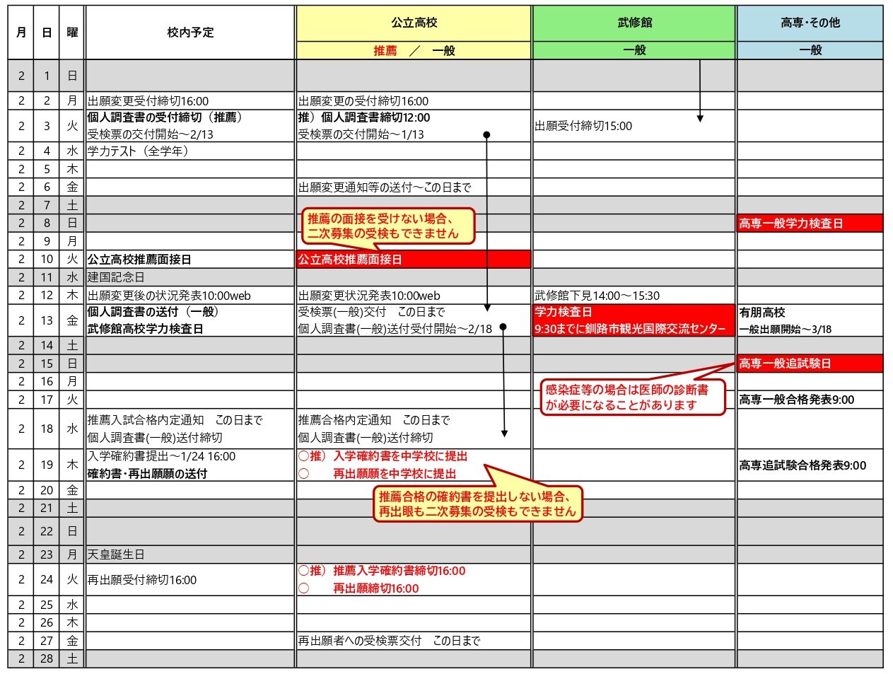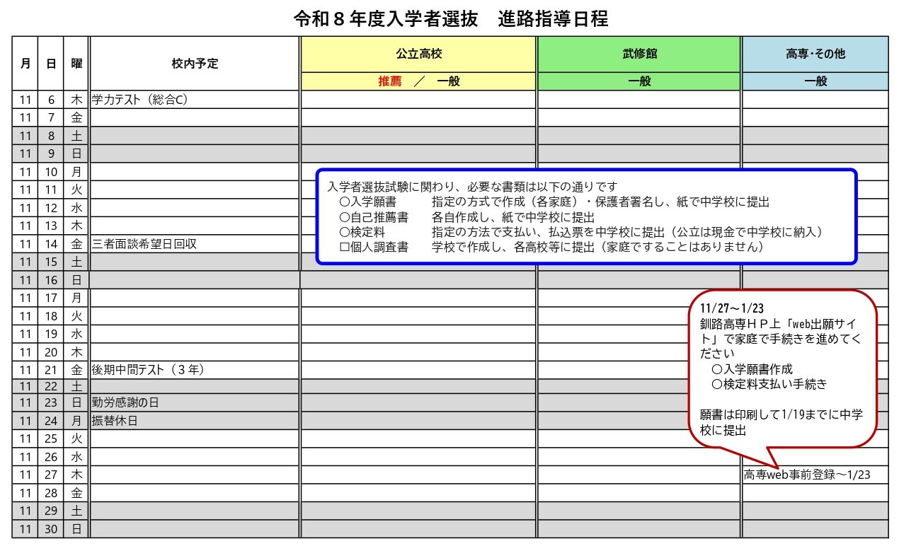 令和8年度入学者選抜試験に関わるスケジュール(予定)