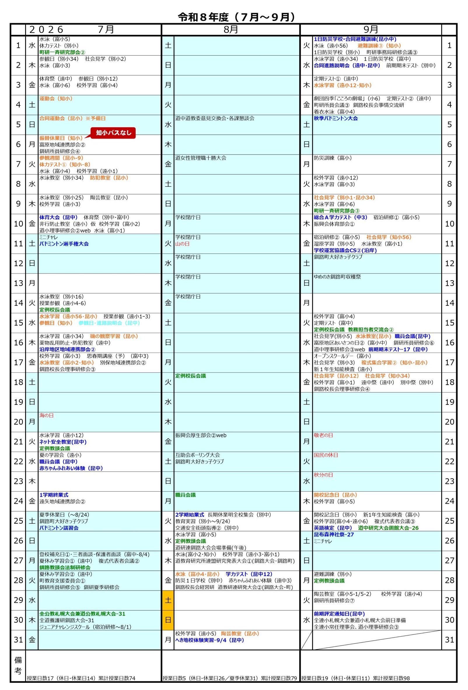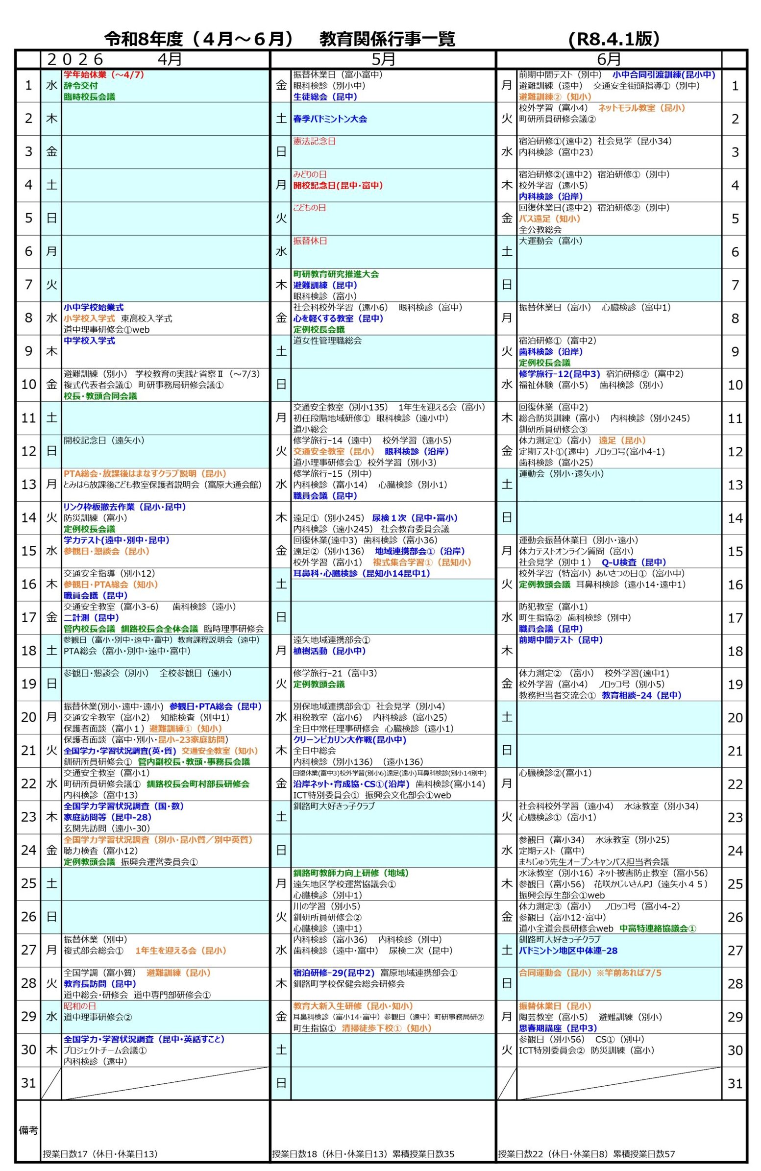 年間予定(昆中)