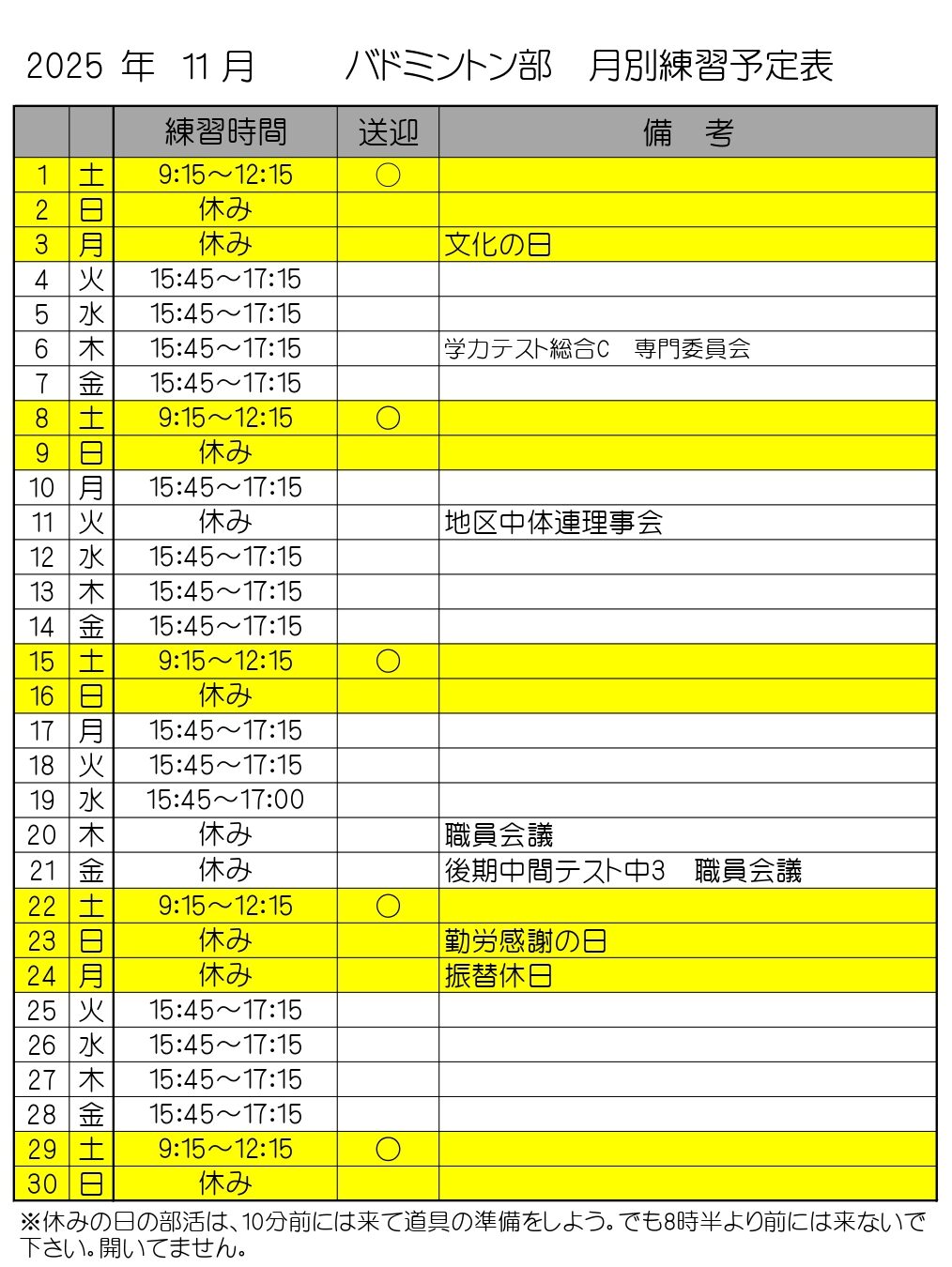 部活動の予定や、おしらせ・大会要項などを掲載します。